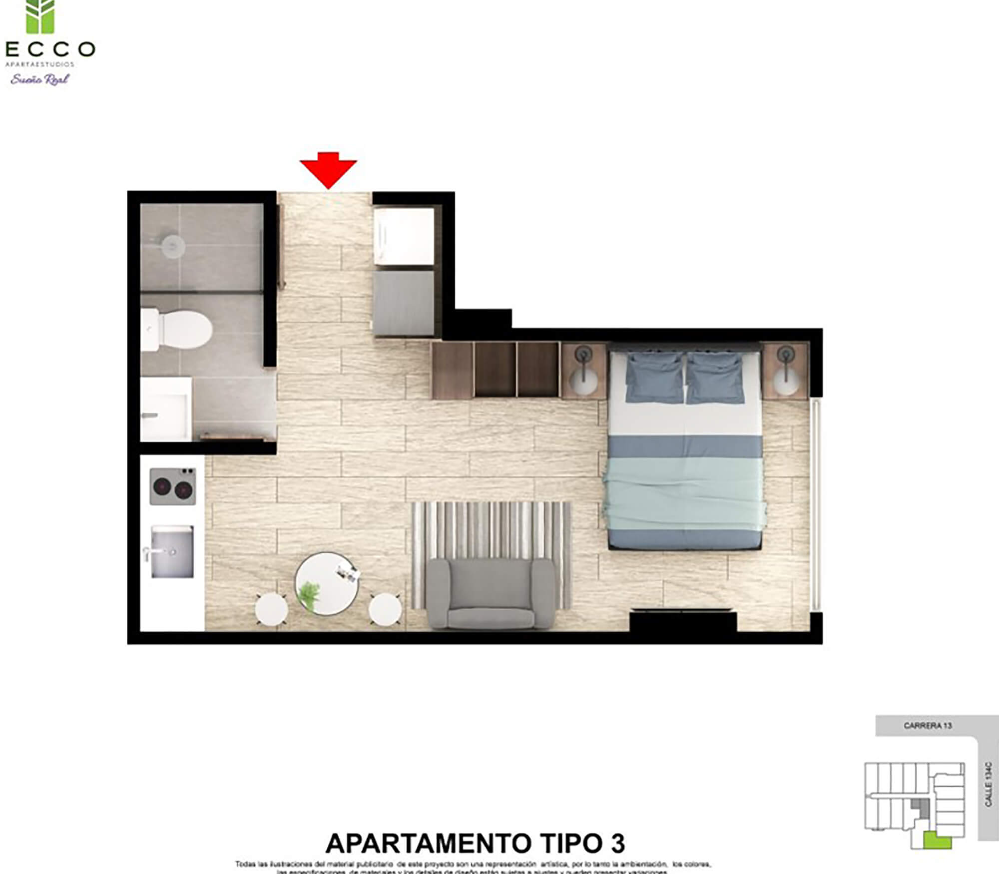 Proyecto de Apartaestudios Con acabados. Ubicado el sector de Nuevo Country carrera 13 #134 Zona residencial y estratégica de la ciudad. Con excelentes vías de acceso cerca a centros comerciales, universidades, centros médicos, clínicas, supermercados.